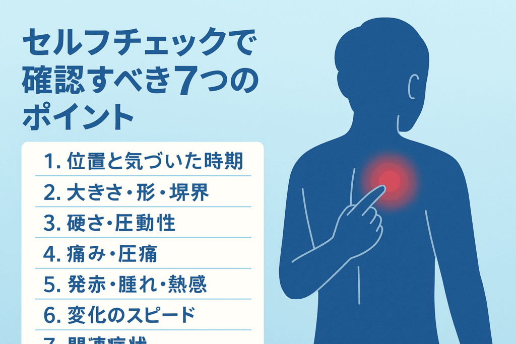 「背中にしこりがあるけど、どう見ればいいの?」と思ったときは、以下の7つのポイントを順番に確認してみましょう。自分でチェックできる範囲を知っておくことが、安心への第一歩です。