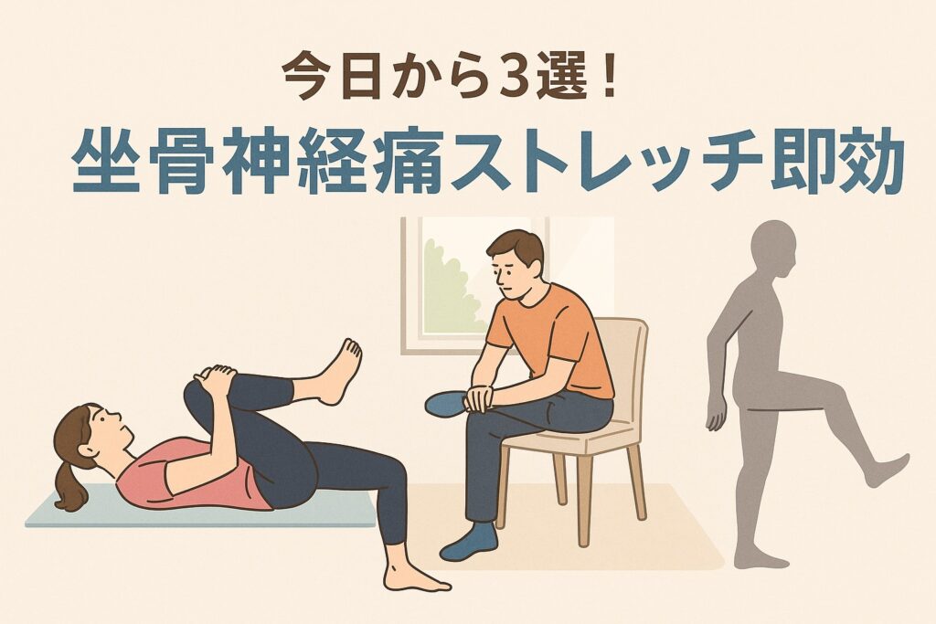 坐骨 神経痛 ストレッチ 即効の方法を知りたい方へ。椅子・床・寝ながらでもできる簡単な3つのストレッチ+注意点を紹介します。痛み・しびれに悩むあなたの“即効アクション”ガイド。