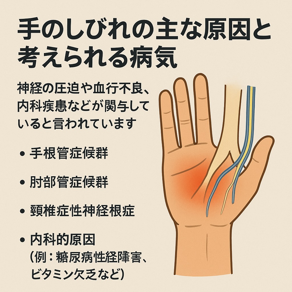 #手のしびれ原因 #神経圧迫 #手根管症候群 #姿勢と血行 #糖尿病性神経障害