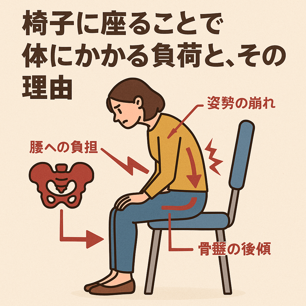 つまり、「椅子に座る」=「負荷ゼロ」ではなく、「静止しているけど背骨・骨盤・筋肉には持続的な負荷がかかっている」という状態なのです。