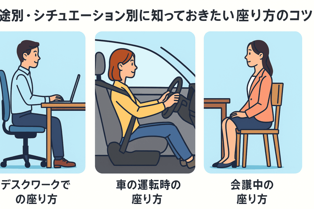次は、用途別・シチュエーション別の座り方の工夫に触れてみましょう。