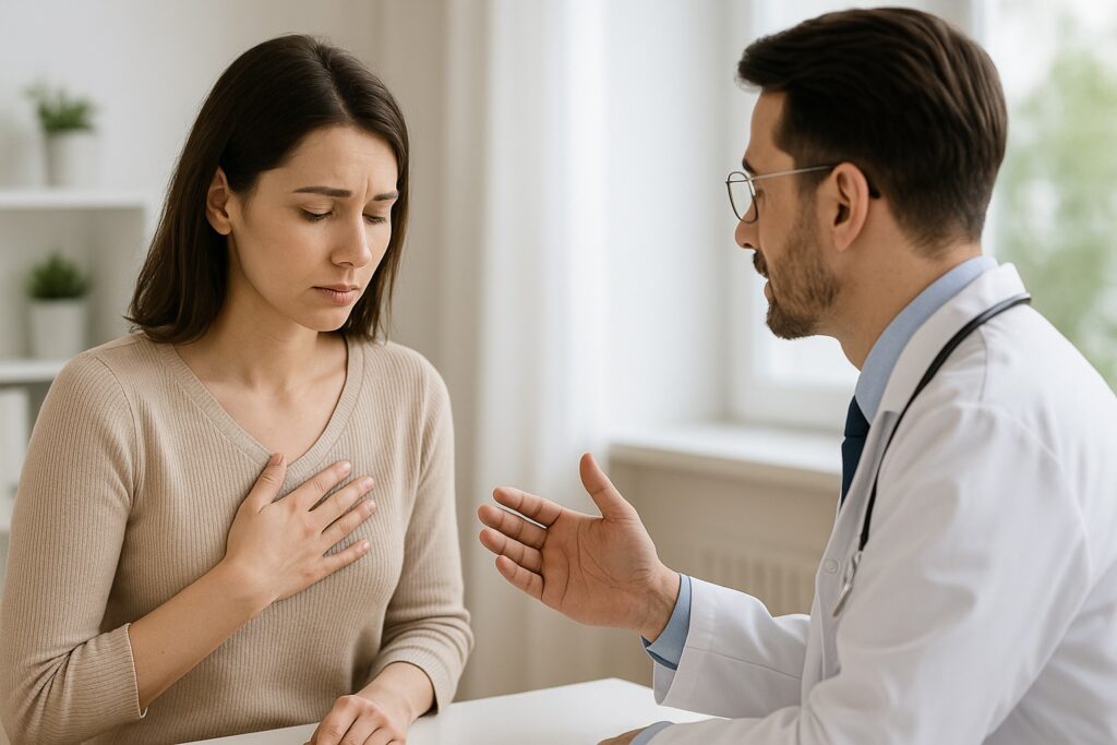 「胸の痛み 右 女性」で検索された方へ。右胸だけに感じる痛みの原因を女性特有の視点から解説。乳腺・ホルモン・肺・胆のうなど幅広く紹介し、どんな場合に受診すべきかもわかりやすくまとめています。
