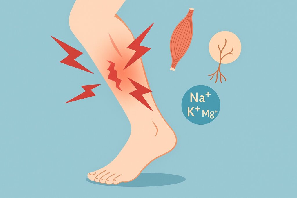 このように、筋肉・神経・電解質・水分のバランスはどれも密接に関わっており、どれか一つが崩れるだけでも「足がつる」きっかけにつながることがあると考えられています。