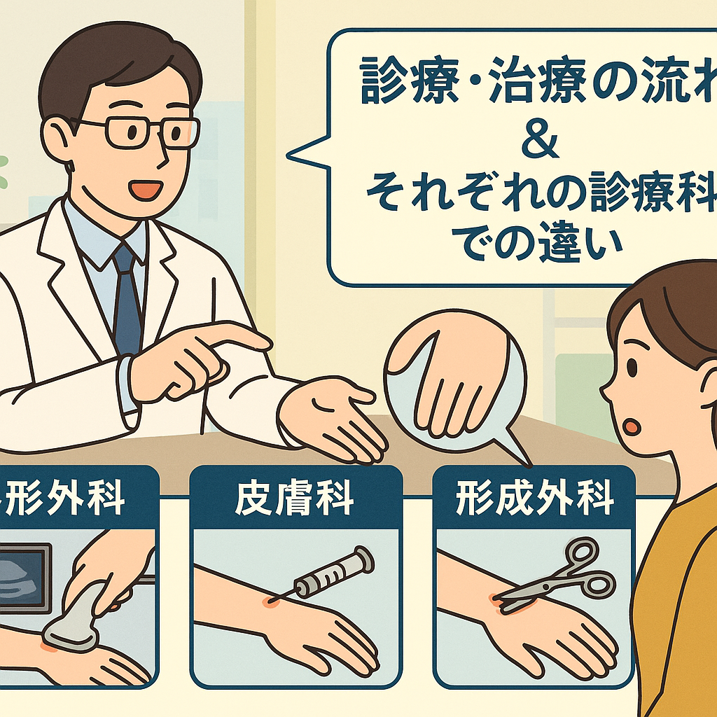 ただし、皮膚科・形成外科で「これは関節包由来だね」という判断が下されたり、手術が関節機能に関わるようであれば整形外科へ紹介されるケースもあります。
