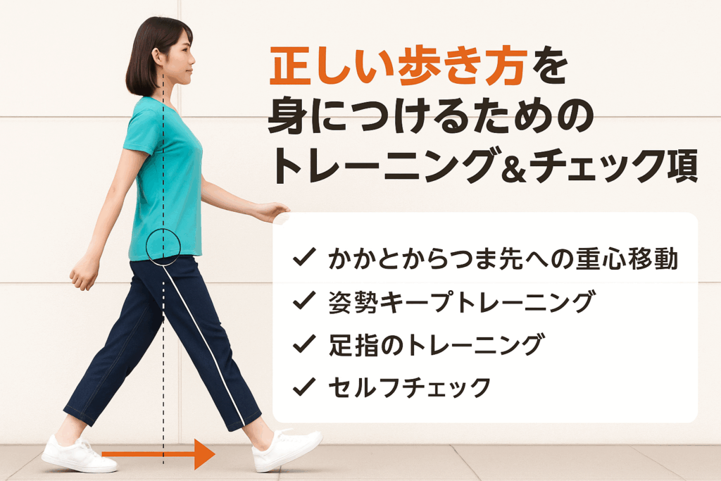 正しい歩き方を身につけるには、単に姿勢を意識するだけでなく、体の使い方を整えるトレーニングが大切だと言われています。特別な器具を使わなくても、日常の中で実践できる方法はいくつもあります。ここでは、初心者でも続けやすい歩行トレーニングとチェック項目を紹介します。