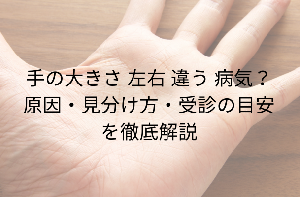 手の大きさ 左右 違う 病気かも?「片方だけ手が大きい」「むくんで見える」と感じたとき、単なる利き手の影響なのか、それとも何らかの病気のサインなのか。原因の種類・セルフチェック・受診すべきタイミングを分かりやすく紹介します。