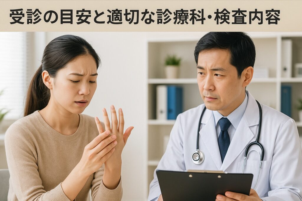 「手の大きさが左右で違う」と感じたとき、多くの場合は利き手や筋肉の使い方が原因ですが、**“急に変化した”“痛みや腫れを伴う”**場合は、体の異常が隠れていることもあると言われています。ここでは、受診の目安や、どの診療科に相談すれば良いかの目安を整理しました。