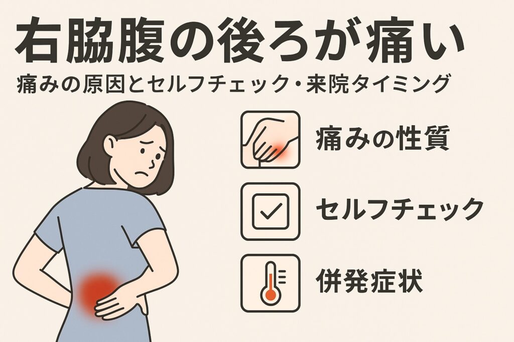 「右脇腹の後ろが痛い」…その違和感や痛み、実は筋肉・神経・内臓など多くの原因が考えられます。この記事では、痛みの種類・併発症状・セルフチェック法・日常でできるケア・受診すべきサインをわかりやすく解説します。