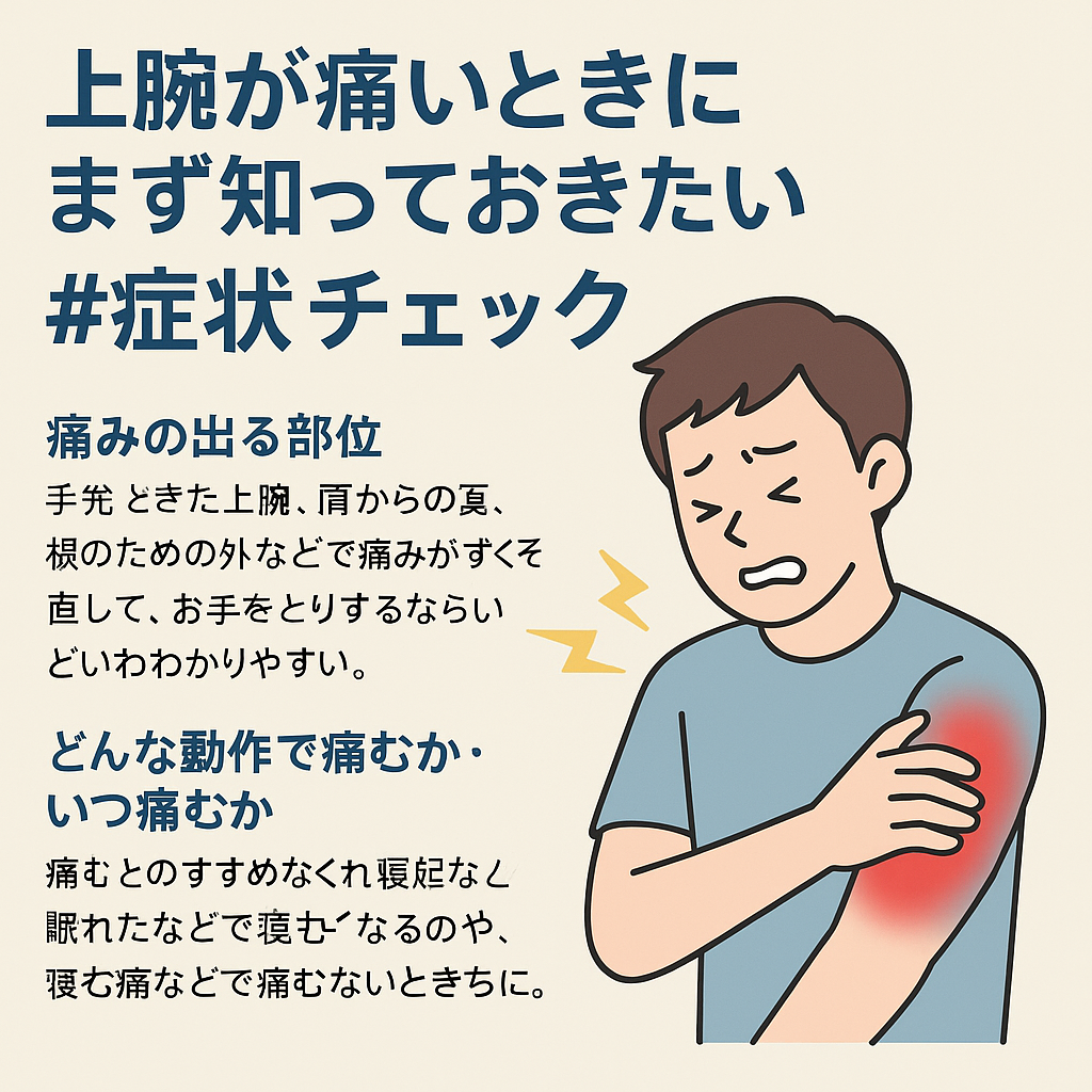 #上腕の痛み #症状チェック #筋肉の炎症 #神経痛 #整骨院相談