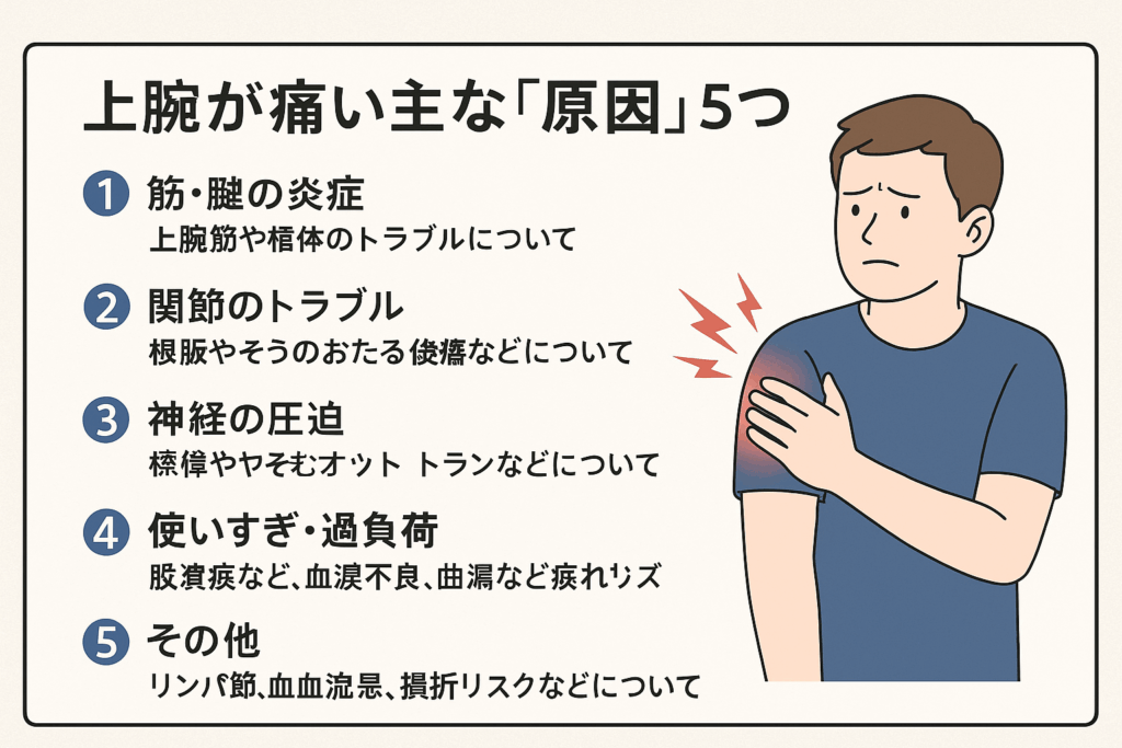#上腕の痛み #原因 #筋肉の炎症 #神経圧迫 #五十肩