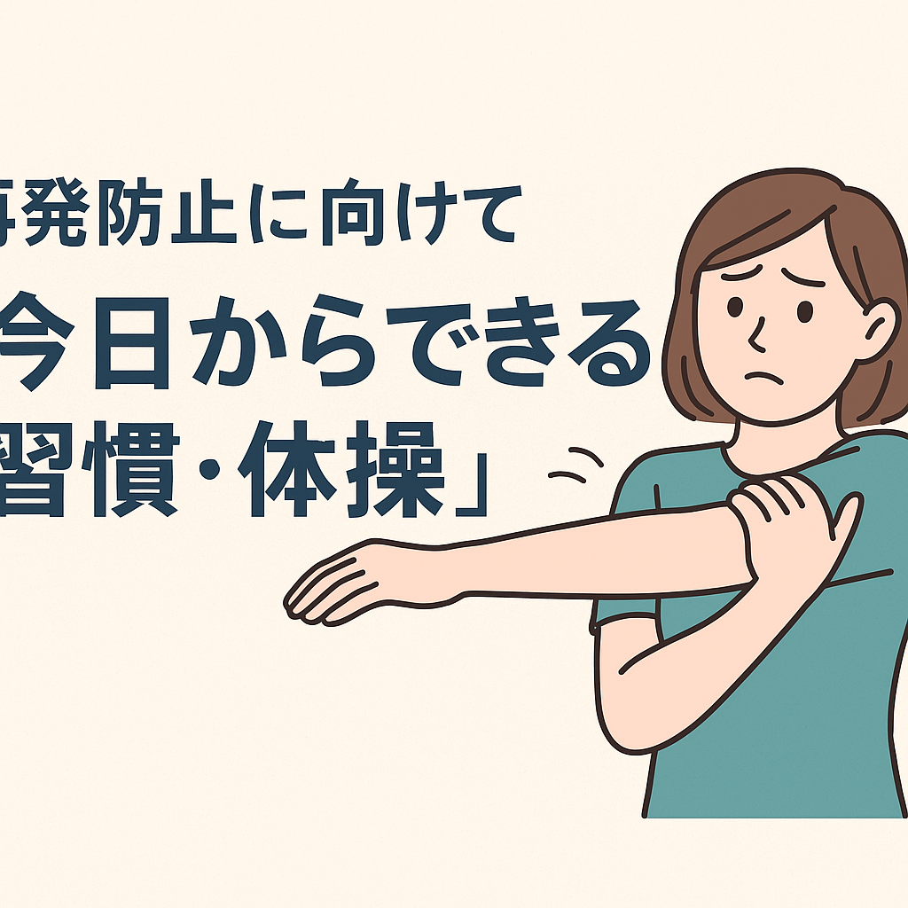 片側ばかりに負担がかかると、筋肉のバランスが崩れ、再発の原因になることがあります。荷物を持つときは左右交互に持ち替える、腕を伸ばしたまま長時間作業しないなど、日常動作の“クセ”を少し意識してみましょう。