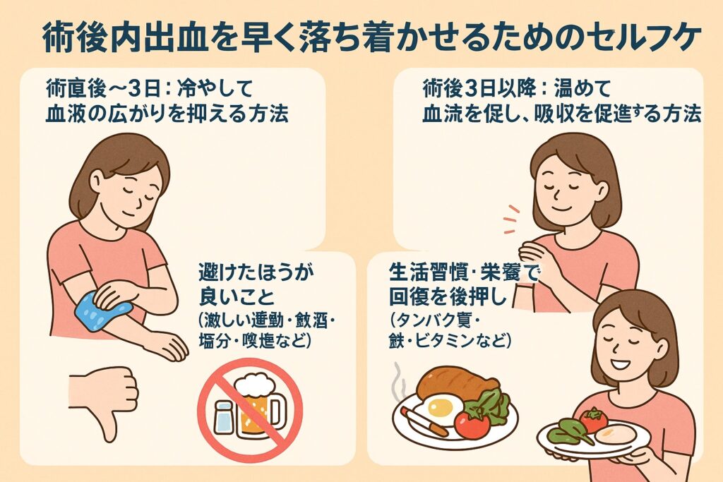 #術後内出血 #冷却ケア #温罨法 #生活習慣改善 #栄養サポート