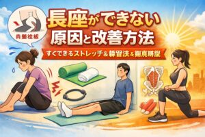 また、座るときは膝を深く曲げすぎず、椅子の高さを調整して膝が直角くらいになるようにすると、関節への圧力を和らげやすいです。
