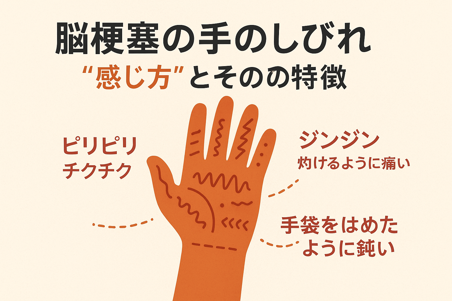 #脳梗塞の手のしびれ #感じ方の違い #ピリピリとした刺激 #手袋感覚のしびれ #片側だけの違和感