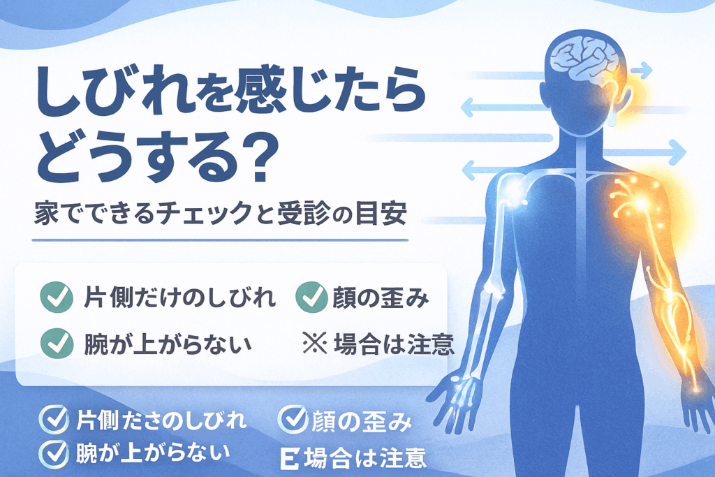突然のしびれは不安を伴いやすいですが、焦らず順番に確認することで状況が整理しやすくなると言われています。「とりあえず様子見でいいか」と放置せず、変化の有無に目を向けることが結果として安心につながるかもしれません。