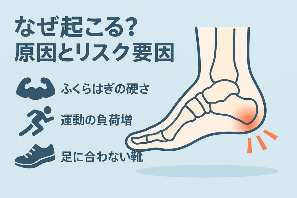 成長に伴い骨が伸びるスピードと、筋肉や腱が伸びるスピードに差が出る時期があります。その時、ふくらはぎが硬くなり、アキレス腱がかかとを強く引っ張る力が働きやすくなると言われています。この張力が成長軟骨を刺激し、痛みにつながるケースも紹介されています。「最近ストレッチしていない」「練習が続いている」という状況では負担が大きくなる傾向があるようです。