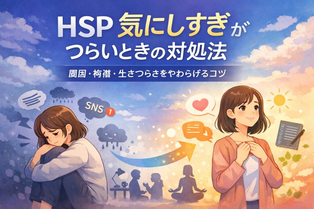 hsp 気にしすぎ で悩む人へ|HSPの特徴・原因・「生きづらさ」の正体を解説し、日常生活でつらさを軽くする具体的な対処法(マインド・行動・セルフケア)をわかりやすく紹介します。 【1.hsp 気にしすぎ とは?│HSPの基礎知識】 HSPは「気にしすぎ」な性... -