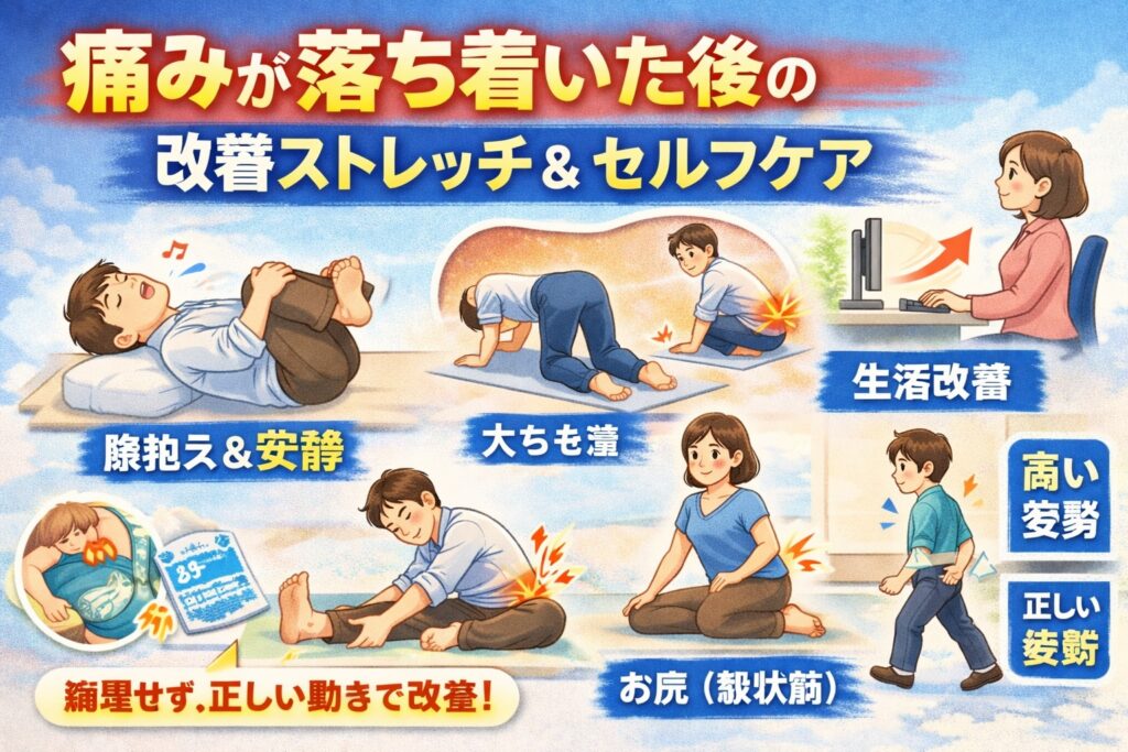3.痛みが落ち着いた後の改善ストレッチ&セルフケア