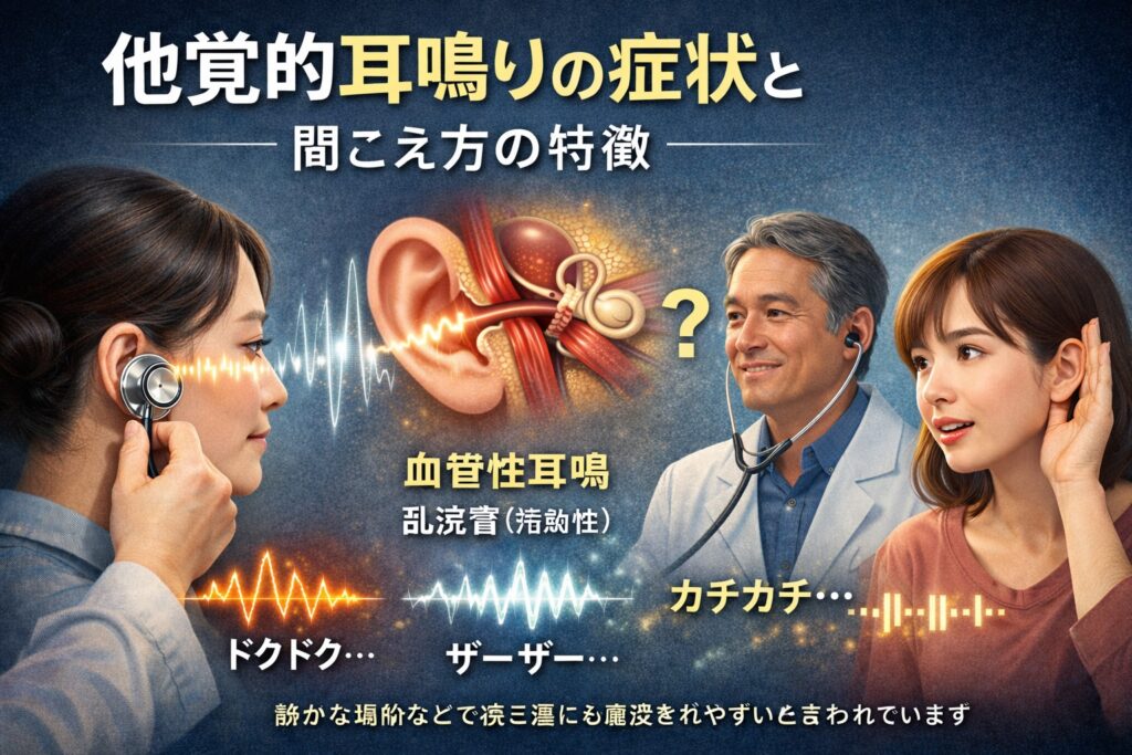 「耳鳴り=自分にしか聞こえないもの」というイメージを持つ方も多いですが、他覚的耳鳴りは少し性質が異なる点が特徴です。