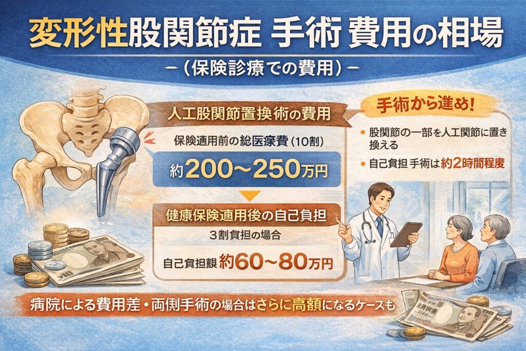 変形性股関節症 手術 費用に関して、人工股関節置換術の平均的な費用・保険適用後の負担額・高額療養費制度の活用法をわかりやすく解説します。
