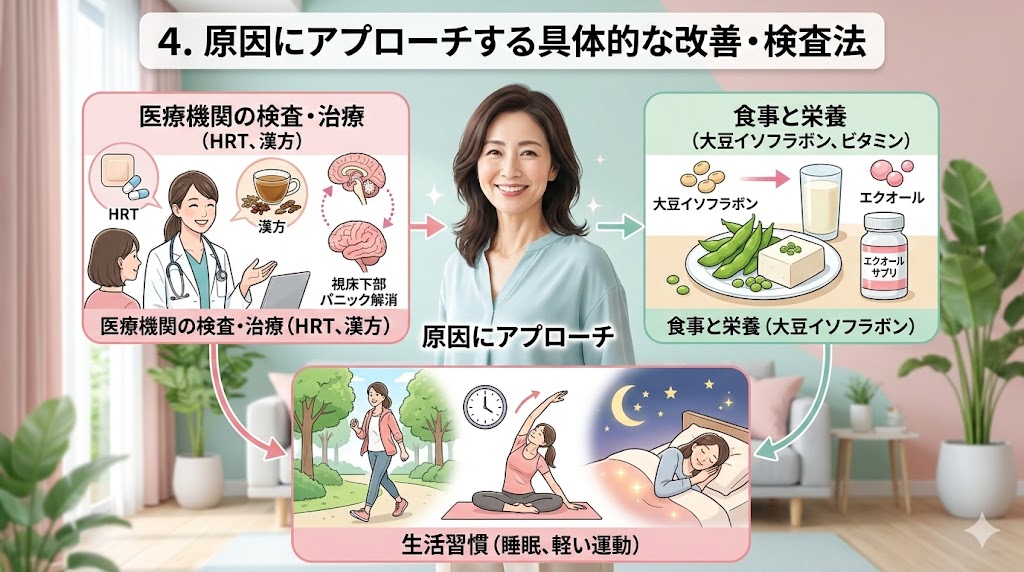 もし「いつもの更年期症状とは少し違うな」と違和感を覚えたら、自己判断で済ませないことが大切ですね。血液検査などでホルモン値を調べることで、原因が更年期にあるのか、それとも別の疾患なのかをはっきりさせることができると言われています。