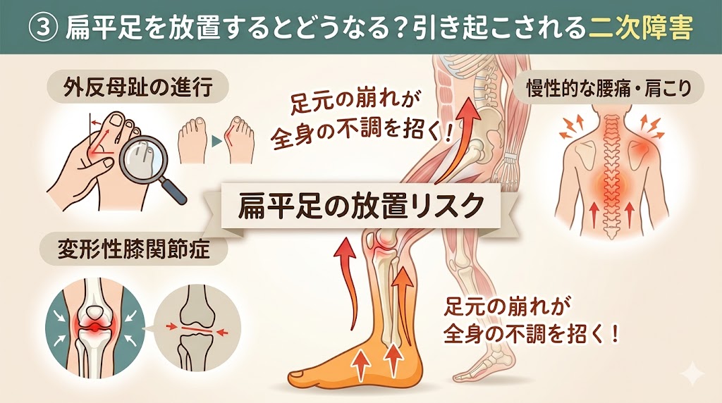 ③ 扁平足を放置するとどうなる?引き起こされる二次障害