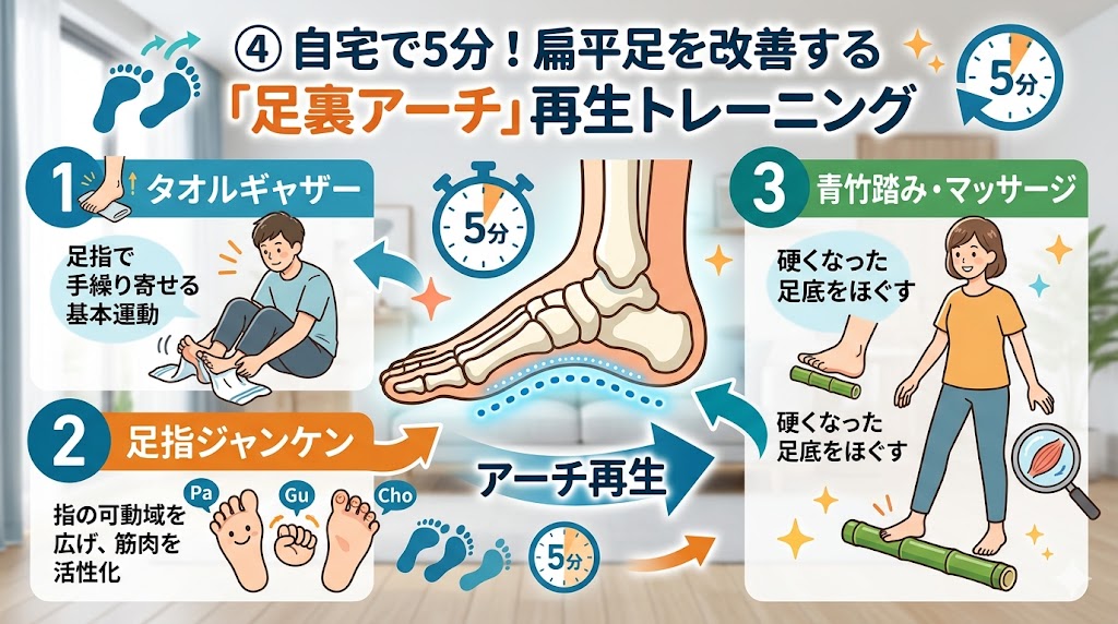 ④ 自宅で5分!扁平足を改善する「足裏アーチ」再生トレーニング