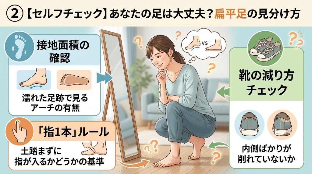 ② 【セルフチェック】あなたの足は大丈夫?扁平足の見分け方