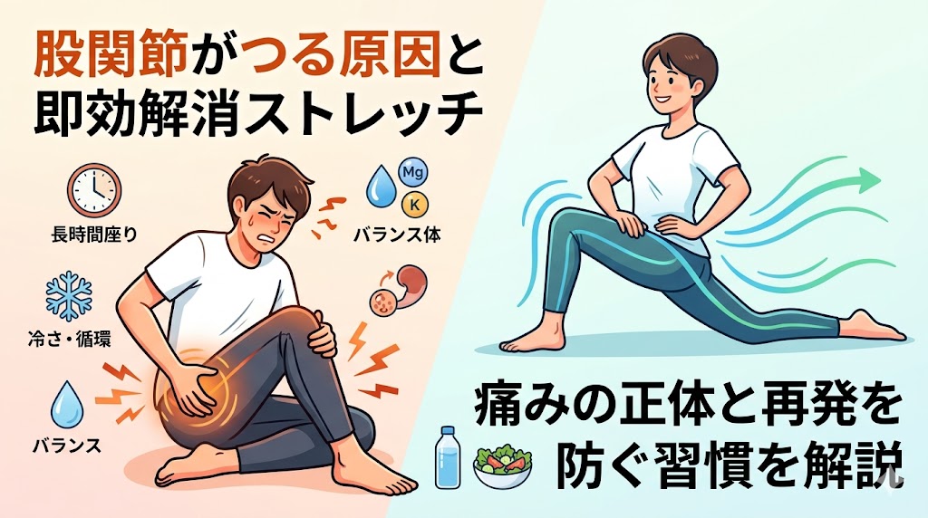 股関節がつる原因は、筋肉の柔軟性低下や血行不良、栄養不足など様々です。この記事では、突然の痛みを和らげる即効ストレッチや、日常生活でできる予防法を専門的視点で解説します。何度も繰り返す股関節の違和感を解消し、スムーズな動きを取り戻しましょう。