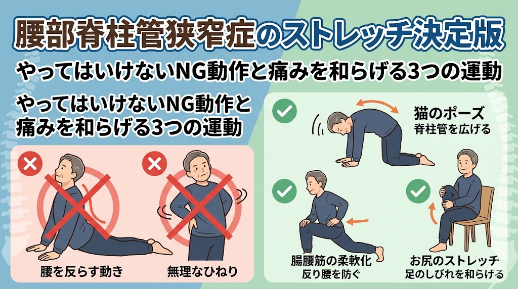 腰部脊柱管狭窄症のストレッチ決定版|やってはいけないNG動作と痛みを和らげる3つの運動