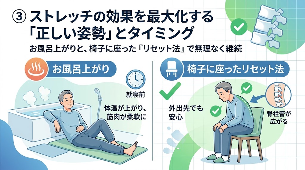 ③ ストレッチの効果を最大化する「正しい姿勢」とタイミング