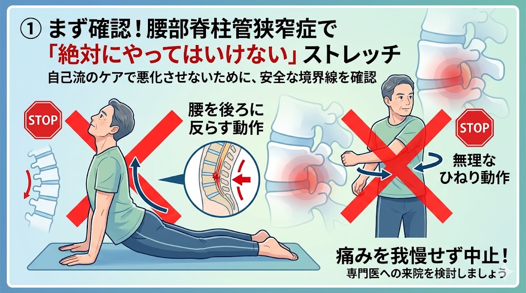 ① まず確認!腰部脊柱管狭窄症で「絶対にやってはいけない」ストレッチ