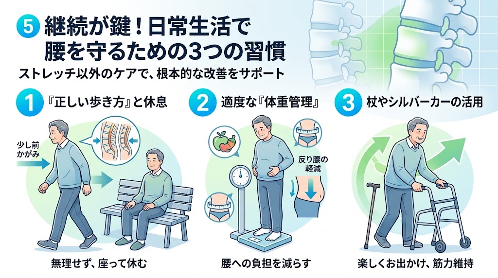 ⑤ 継続が鍵!日常生活で腰を守るための3つの習慣