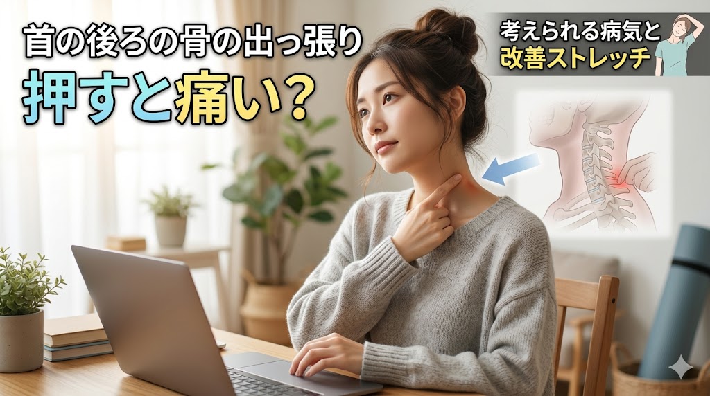 ① 首の後ろの骨の出っ張りは「頚椎」の一部。押すと痛む3つの主な原因