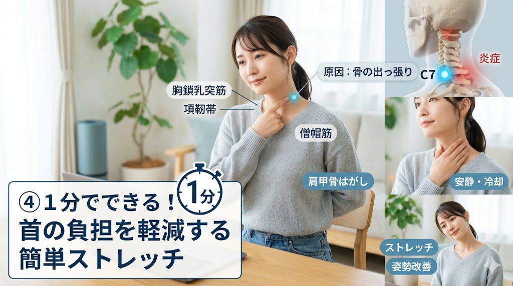 ④ 1分でできる!首の負担を軽減する簡単ストレッチ