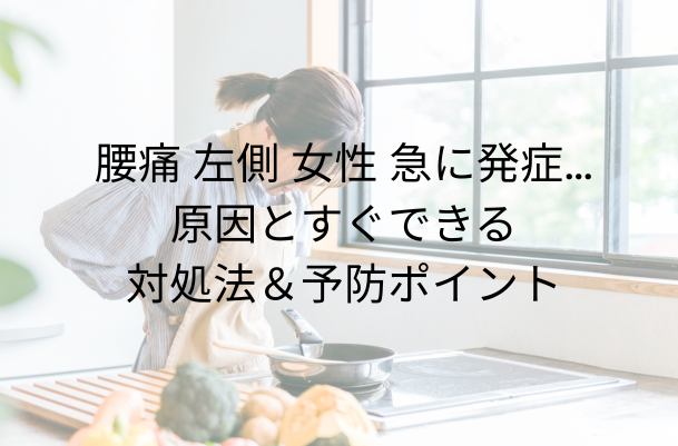 腰痛 左側 女性 急に痛みが出たら要チェック。女性に多い原因(骨盤の歪み・婦人科系・内臓疾患など)から、今日からできるセルフ対応法と「どんな場合に病院へ行くべきか」をわかりやすく説明します。 【1.「急に左側の腰が痛む」女性に多い原因とは】 筋... -