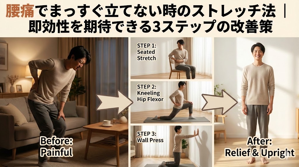 腰痛でまっすぐ立てない時のストレッチ法|即効性を期待できる3ステップの改善策