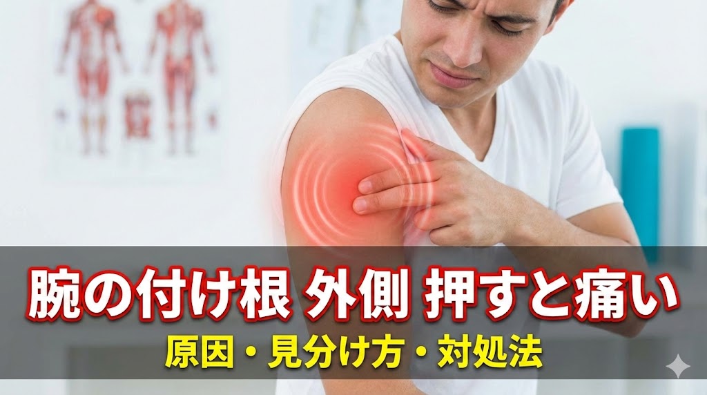 腕の付け根を外側から押すと痛い時、考えられる主な原因は五十肩(肩関節周囲炎)や腱板損傷です。この記事では、痛みの正体を見分けるチェックリストや、今すぐできる応急処置、何科を受診すべきかの目安を専門的な視点で分かりやすく解説します。 【1.腕... -