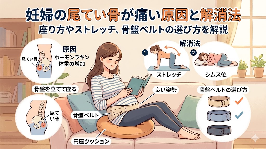 妊婦の尾てい骨が痛い原因と解消法|座り方やストレッチ、骨盤ベルトの選び方を解説