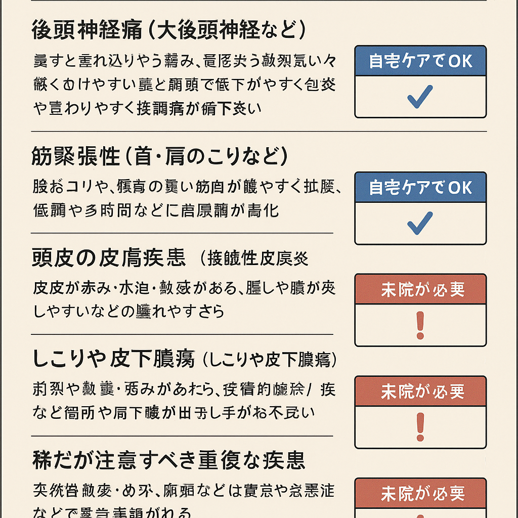 - 痛みの広がり:押した部分だけか、頭頂部や側頭部まで響くのか。