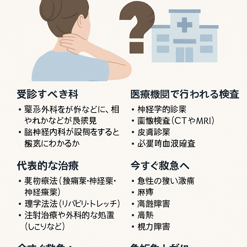 - 脳神経内科:神経痛や頭痛、しびれなど神経に関わる症状が強い場合に選ばれることが多いとされています。