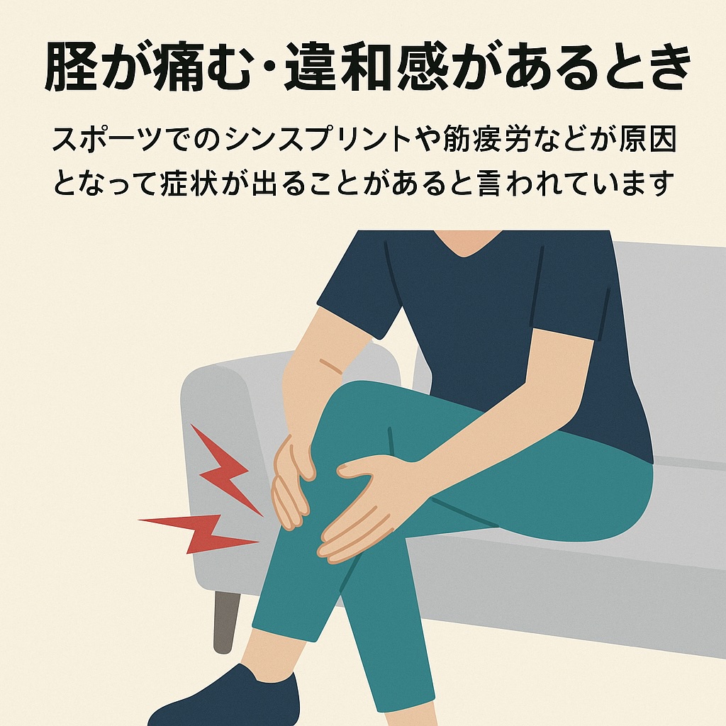 スポーツによるシンスプリントや筋肉の過負荷ランニングやジャンプ動作を繰り返すと、脛の前面や内側に痛みが出ることがあります。特に「シンスプリント」と呼ばれる状態は、前脛骨筋や後脛骨筋に過度の負担がかかることで発生すると言われています。部活動やマラソン練習の場面で多く見られる症状で、休息や体の使い方の工夫が重要だと考えられています(引用元:リハサク、理学ボディ)。外的要因による負担脛の違和感は筋肉の張りやけいれん、疲労だけでなく、靴や地面の状態も影響すると言われています。クッション性の低い靴や硬い路面での運動は、脛骨に大きな負荷を与えやすいと考えられています。また、姿勢や歩き方のクセも痛みの一因になる場合があるようです(引用元:理学ボディ、いしゃ直行)。痛みが出やすい動きやタイミング脛の痛みは、特定の動作やタイミングで強く現れるケースが多いとされています。たとえば、歩行中の蹴り出しやランニング後半、つま先を上げたときなどです。筋肉の疲労や血流不足により一時的に痛みが増すことも報告されています。こうした特徴を知ることで、自分の体のサインに早く気づけると言われています(引用元:理学ボディ)。