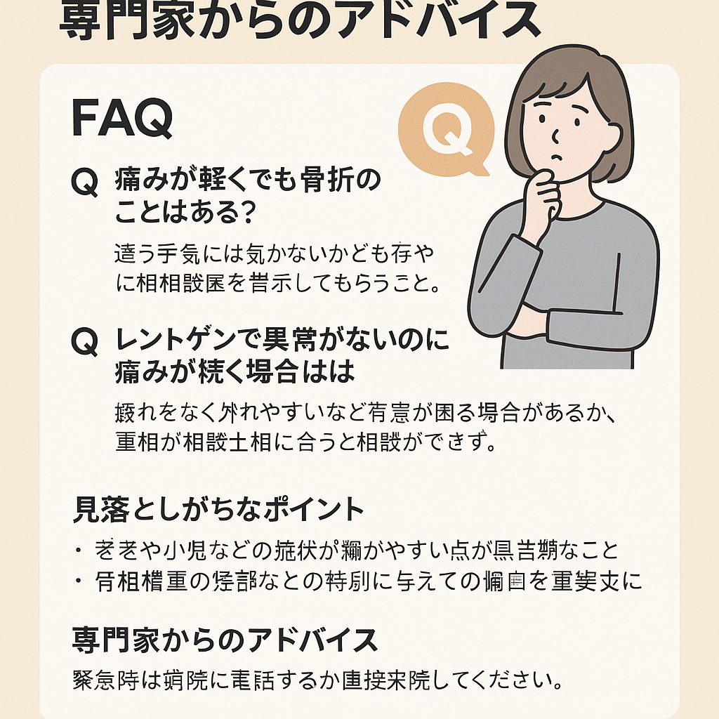 こうしたポイントに複数当てはまる場合は、骨にひびが入っている可能性があるため、専門家による確認を検討すると安心だと考えられています。