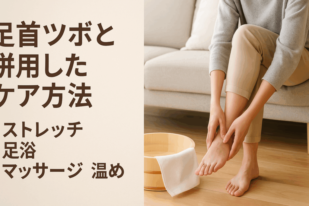 ツボ押しを単独で行うよりも、「ストレッチ」や「温め」などのケアを組み合わせることで、より心地よい変化を感じやすいと言われています。特に足首まわりは血流が滞りやすく、日常生活で疲れがたまりやすい部分です。ここでは、ツボ刺激と相性の良いケアを5つ紹介します。すべて自宅でできる簡単な方法なので、無理のない範囲で試してみましょう。