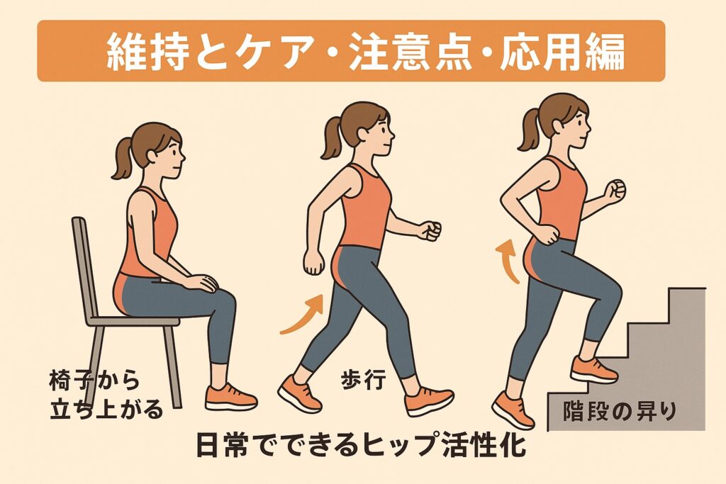こうした小さな意識の積み重ねで、日常的にヒップアクティベーション(活性化)ができると考えられています。