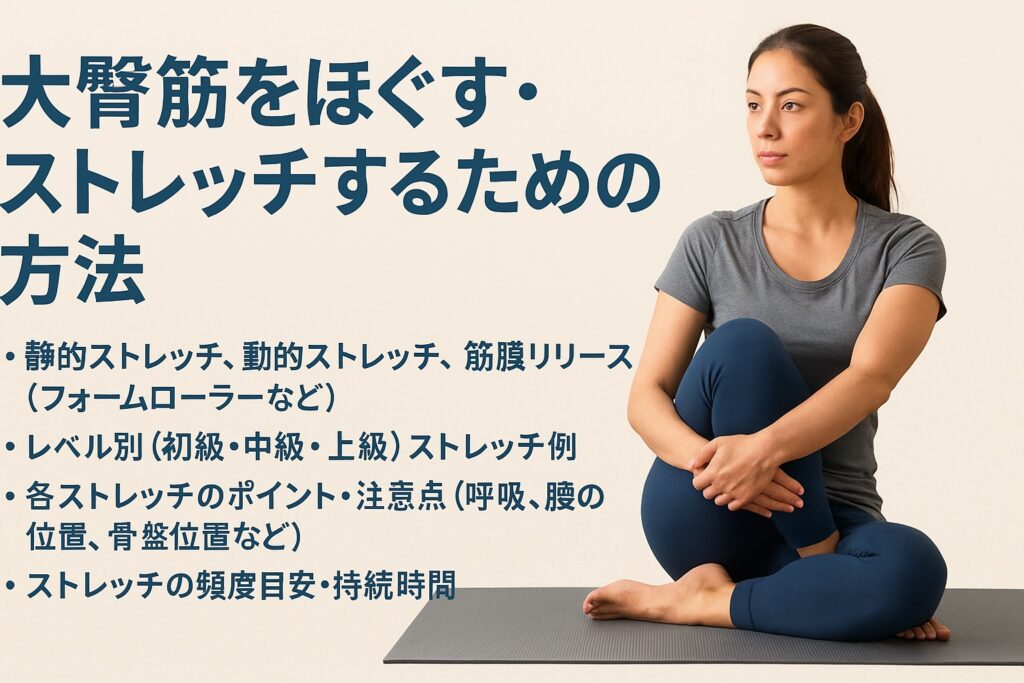 「お尻がカチカチで動かしづらい」「座るとすぐ張る」――そんなときは、大臀筋をゆるめるストレッチが効果的だと言われています。