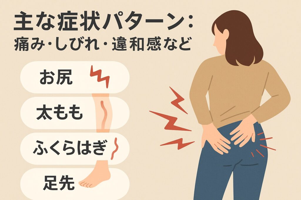 坐骨神経痛の症状を詳しく解説します。お尻から脚にかけての痛み・しびれ・チクチク感などのパターン、重症化のサイン、早期対応策までをまとめて紹介します。