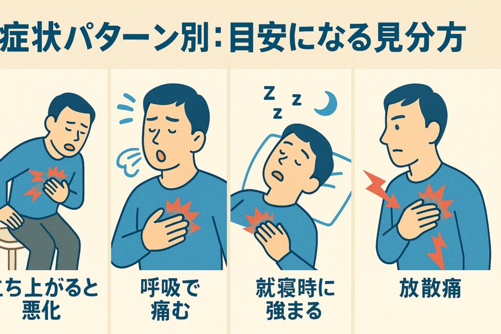 「胸が痛い 真ん中 圧迫感」を感じたとき、ただ漠然と不安になるより、「このパターンはこうかも?」とある程度見当をつけられたら安心ですよね。ここでは、典型的なパターンをいくつか紹介するので、「あ、自分はこれかも……」と思えるものを当てはめつつ読み進めてください。