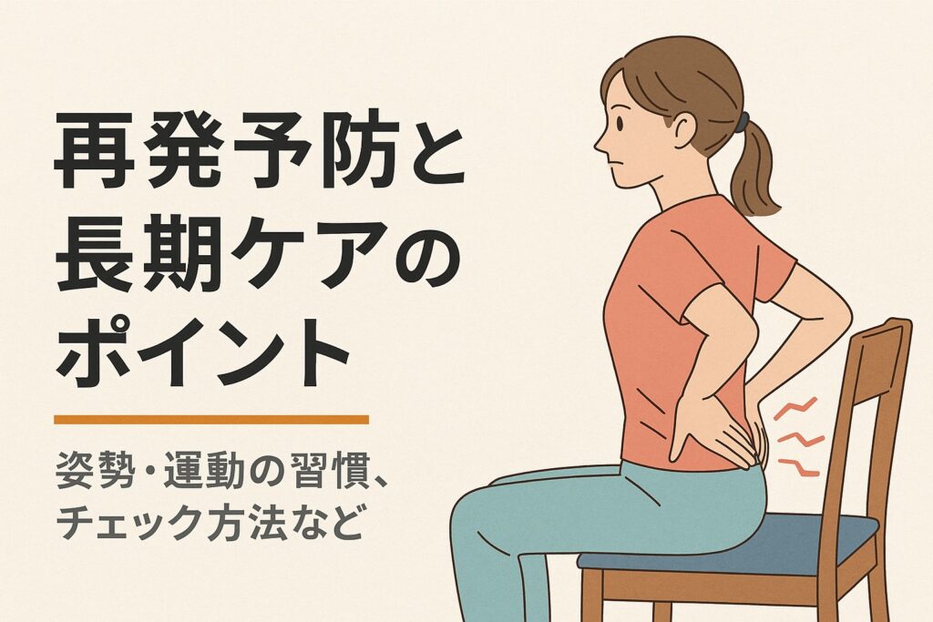 このように、姿勢・筋力・用具・習慣・セルフチェックという5本柱を意識して再発予防を組み立てていくことで、「痛みを繰り返さない」体づくりに近づけるはずです。