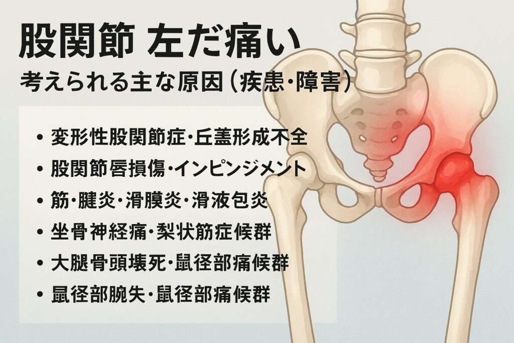 股関節が左だけ痛いとき、「この痛みはどこから来ているの?」と感じる方は多いです。